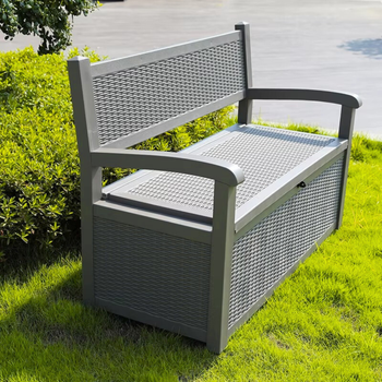 Estilo moderno impermeable al aire libre jardín Patio muebles cubierta ratán almacenamiento Banco asiento hecho de plástico