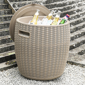 Cool Bar Jardín al aire libre Cubo de hielo Mesa enfriadora de plástico para fiestas en el jardín, reuniones en la playa, picnics y barbacoas en el patio trasero