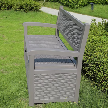 2-en-1 Patio al aire libre Jardín Banco largo Rattan Plástico con almacenamiento Sillas de jardín elegantes