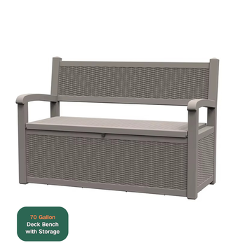 Banco de resina de 70 galones moderno con almacenamiento Banco de plástico elegante Tumbona Caja Silla de patio